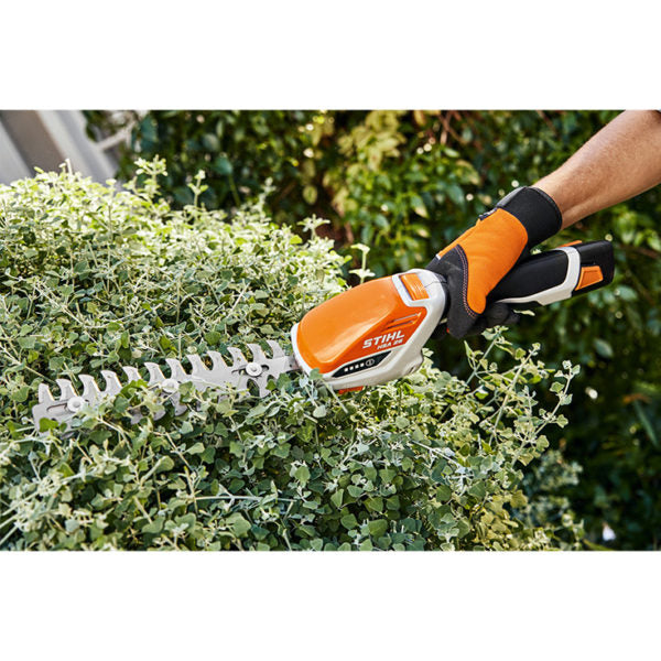 Prerëse gardhesh me bateri HSA 26, e lehtë dhe kompakte, ideale për prerjen dhe mirëmbajtjen e degëve të vogla në pemë dhe bimë me gjethe të imëta. Tehet prerëse janë të dizajnuara me teknologjinë STIHL për prerje efikase dhe të lehtë. Pajisur me prerëse bari për skajet e lëndinës dhe dorezë kundër rrëshqitjes për përdorim ergonomik. Ndryshimi i teheve bëhet shpejt pa mjete shtesë, ndërsa treguesi i baterisë tregon kapacitetin në çdo moment. Përfshin baterinë AS 2, karikuesin AL 1, tehet prerëse dhe çantën mbajtëse.